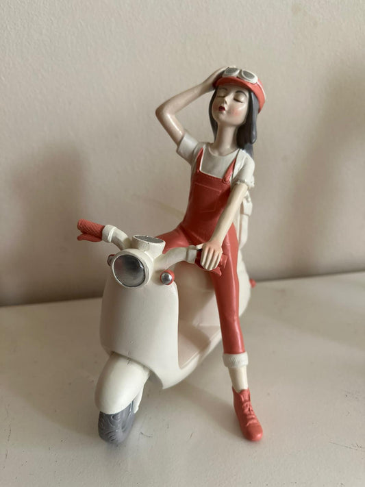Vespa Girl - Vespa meisje - Scooter Girl - Wit/Roze - 20cm hoog
