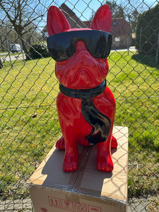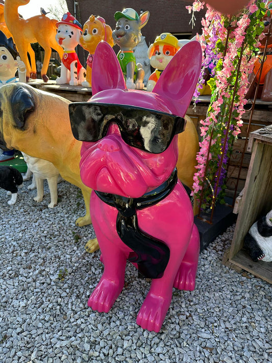 Franse Buldog met bril en stropdas (60cm hoog)