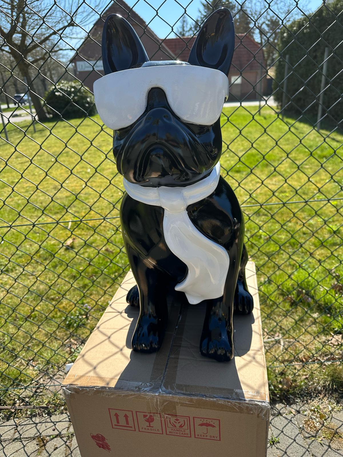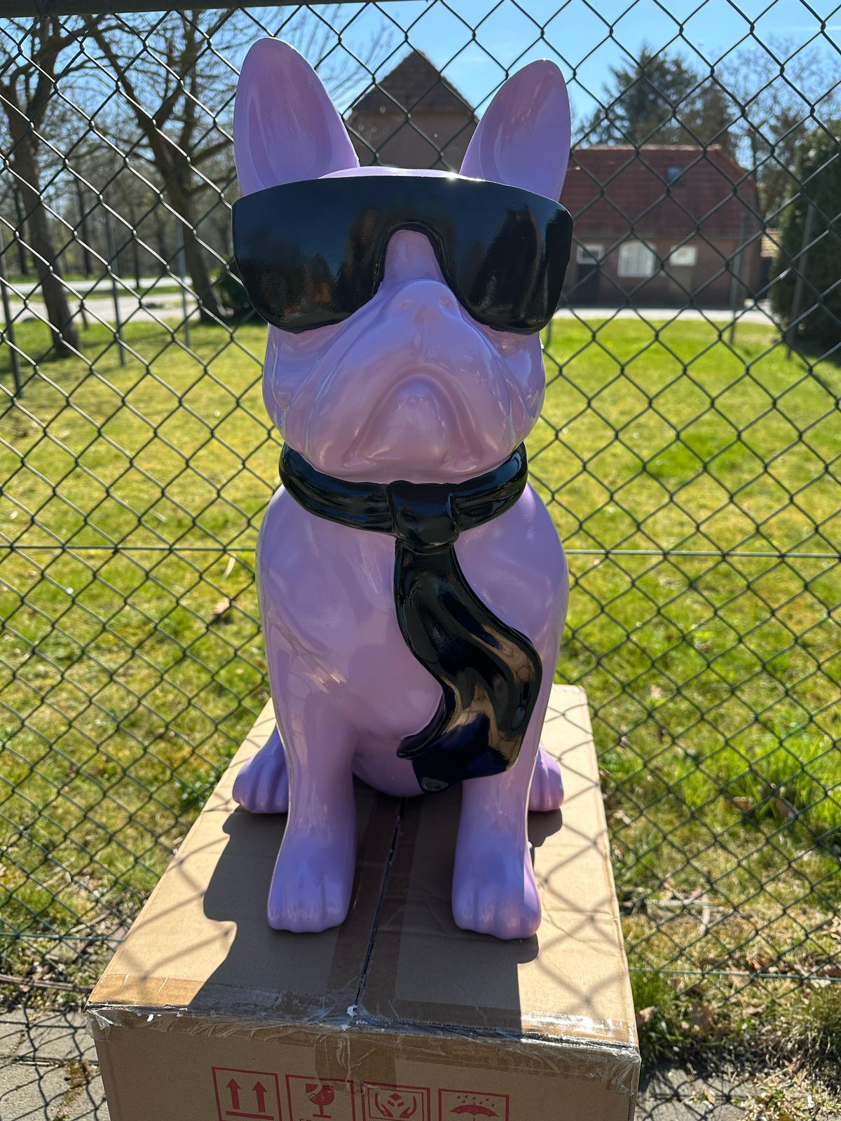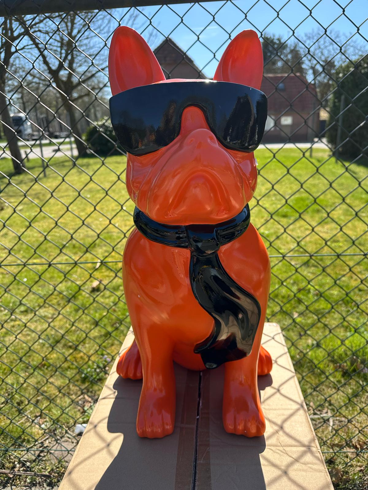 Franse Buldog met bril en stropdas (60cm hoog)