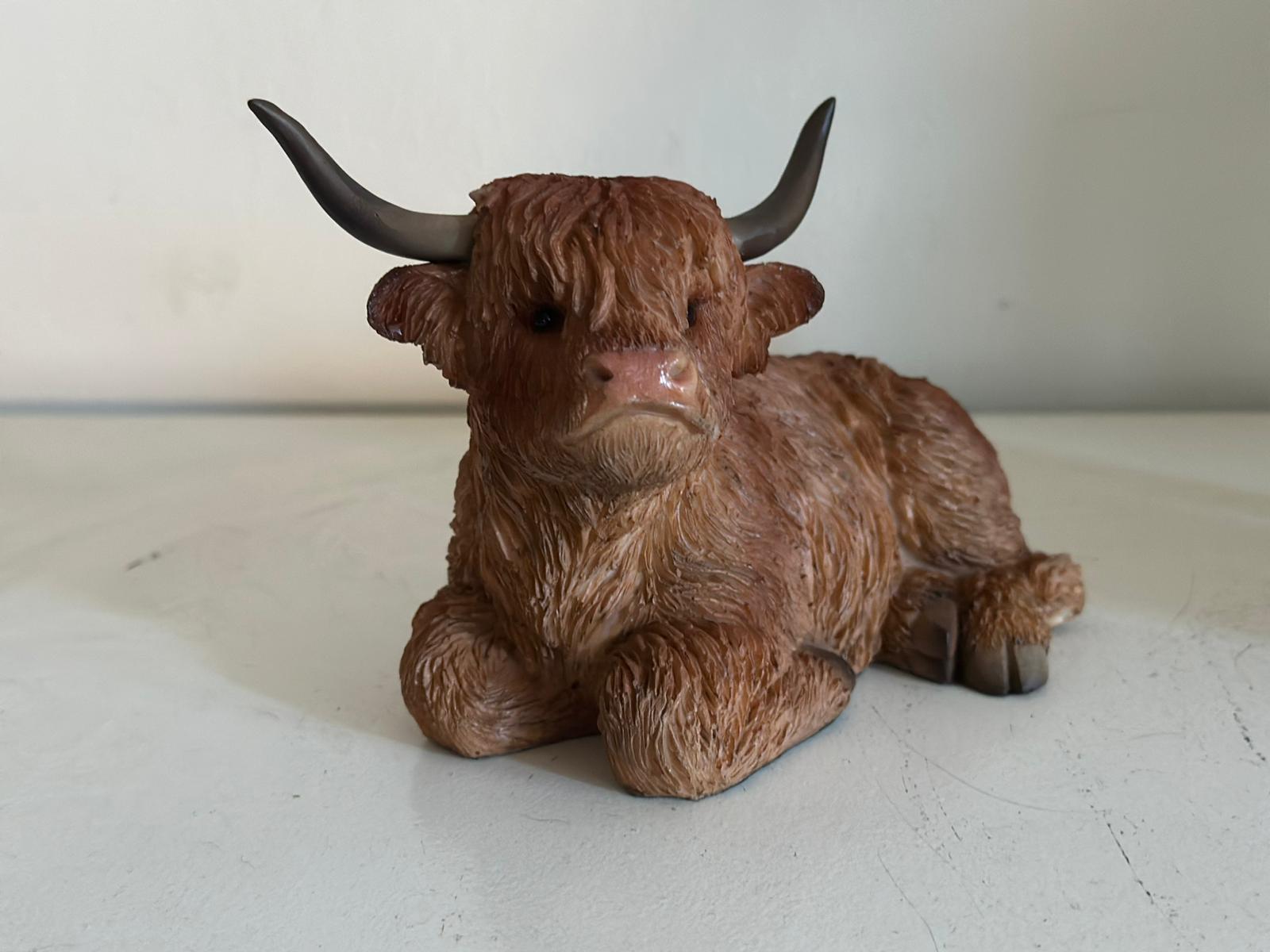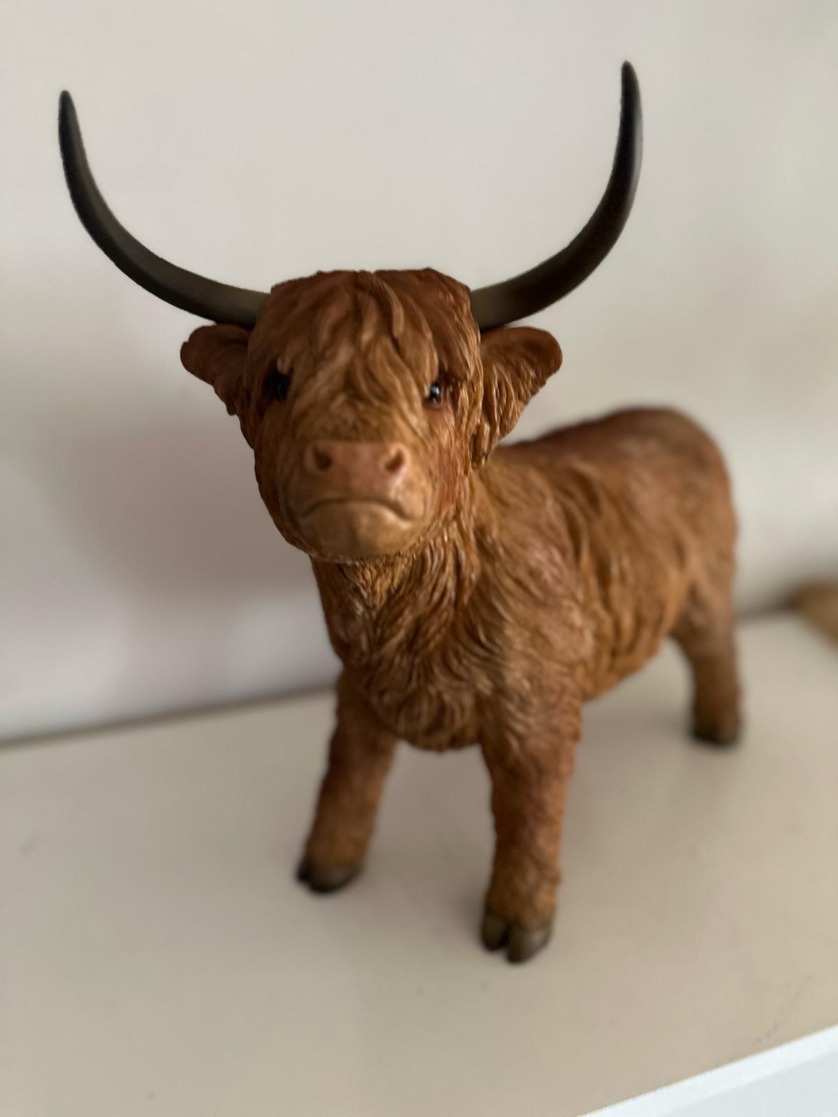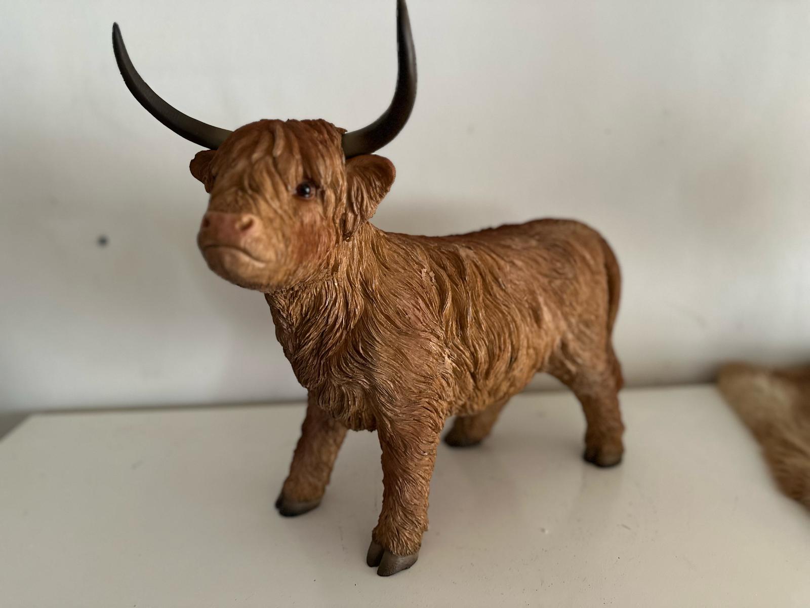 Breng de charme van de Schotse Hooglander in huis met deze prachtige set van twee beelden. De set bestaat uit één liggende en één staande Hooglander, beiden gedetailleerd vormgegeven met oog voor realistische kenmerken zoals de kenmerkende horens en de ruige vacht.
