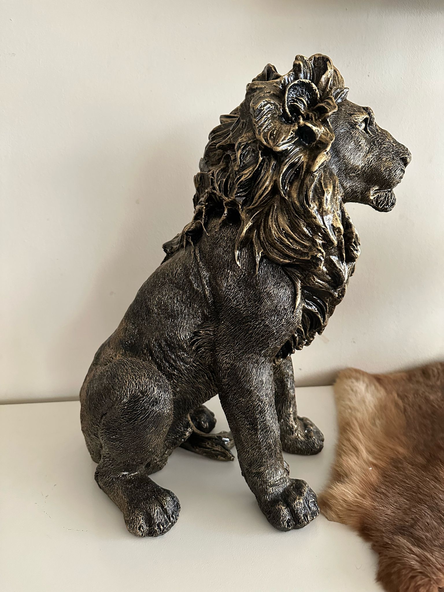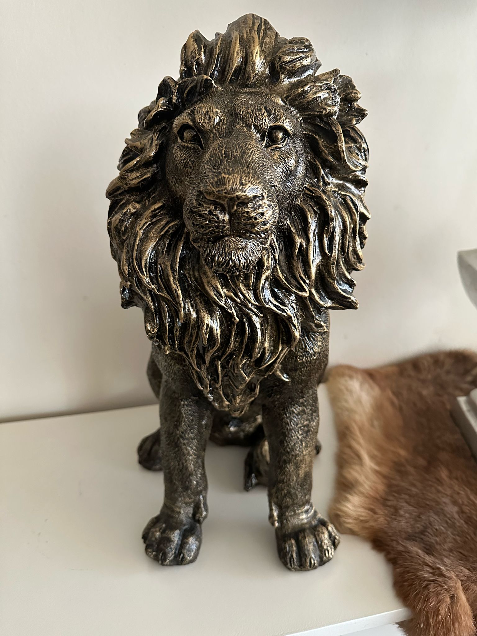 Voeg een vleugje koninklijke uitstraling toe aan je interieur met dit krachtige beeldje van de koning der dieren.